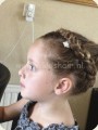Iris heeft al vaker dreads gehad en vond het een leuk idee om dit kapsel te nemen voor haar bruiloft. De bloemmetjes verwerkt tussen de blonde dreads, geven een extra romantische tint aan het geheel.